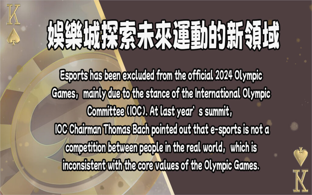 Esports has been excluded from the official 2024 Olympic Games, mainly due to the stance of the International Olympic Committee (IOC). At last year’s summit, IOC Chairman Thomas Bach pointed out that e-sports is not a competition between people in the real world, which is inconsistent with the core values of the Olympic Games. He emphasized that the origin of the Olympics is an actual duel between humans, and although e-sports competes in the virtual world, it cannot fully present the core concepts of the Olympics.