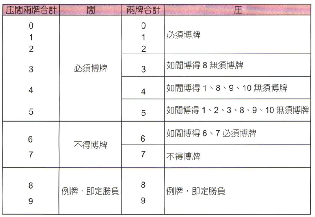 按百家樂博牌規則,除了閒家6點、庄家7點或8點以上不博牌,自然贏或和局之外,只要是一方博脾,博牌那方肯定是處在劣勢。